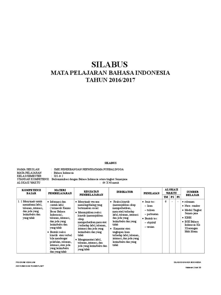 Silabus bahasa indonesia sma smk kelas xii tahun pelajaran 2018 2019 semester 2 7 kolom zuhri indonesia bahasa sma pendidikan dasar. Oleh sebab itu, dibutuhkan kelengkapan perangkat pembelajaran terbaru untuk keperluan guru dalam proses ajar mengajar siswa secara daring. Silabus ini merupakan versi terbaru pada sekolah menengah atas (sma), dalam format word sehingga memudahkan anda dalam mengedit dan menyesuaikan. Contoh silabus bahasa indonesia ilmusosial id. Penilaian untuk mengetahui keberhasilan kompetensi pengetahuan (misalnya tentang struktur teks dan kebahasaan) digunakan tes tulis dan tes lisan.